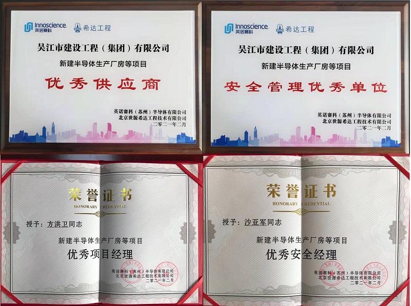 歷經(jīng)兩年半精心施工,方洪衛(wèi)經(jīng)理和他的英諾賽科工程建設(shè)團(tuán)隊(duì)交出了完美的答卷,在建設(shè)單位召集的工程總結(jié)表彰會(huì)上,一舉獲得了“優(yōu)秀供應(yīng)商”“安全管理優(yōu)秀單位”、“優(yōu)秀項(xiàng)目經(jīng)理”、“優(yōu)秀安全經(jīng)理”等獎(jiǎng)項(xiàng)。方經(jīng)理在總結(jié)會(huì)上代表吳江建工發(fā)言,向建設(shè)單位和EPC總包表達(dá)了深深的感謝和祝福,方經(jīng)理表示,承建英諾新建半導(dǎo)體廠房工程,是對自身施工管理水平的極大考驗(yàn),工程全過程高標(biāo)準(zhǔn)嚴(yán)要求,極大地提升了團(tuán)隊(duì)技術(shù)和管理水平,期待與建設(shè)單位保持良好合作,共同開創(chuàng)芯片事業(yè)新篇章!