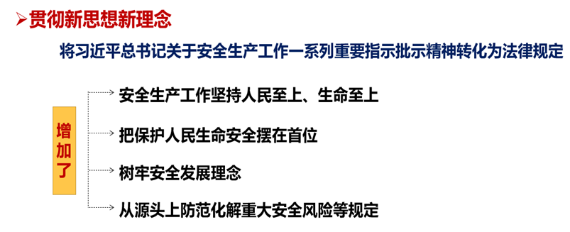 本年度企業安全三類人員繼續教育培訓,已將“有關條文修正前后對照表”為培訓的一項內容,及時介紹修訂的內容,并在考試題目中體現了重要的修改條款,如“將原第三條一句話修正為三小段:’安全生產工作堅持中國共產黨的領導。安全生產工作應當以人為本,堅持人民至上、生命至上,把保護人民生命安全擺在首位,樹牢安全發展理念,堅持安全第一、預防為主、綜合治理的方針,從源頭上防范化解重大安全風險。安全生產工作實行管行業必須管安全、管業務必須管安全、管生產經營必須管安全,強化和落實生產經營單位主體責任與政府監管責任,建立生產經營單位負責、職工參與、政府監管、行業自律和社會監督的機制’”。