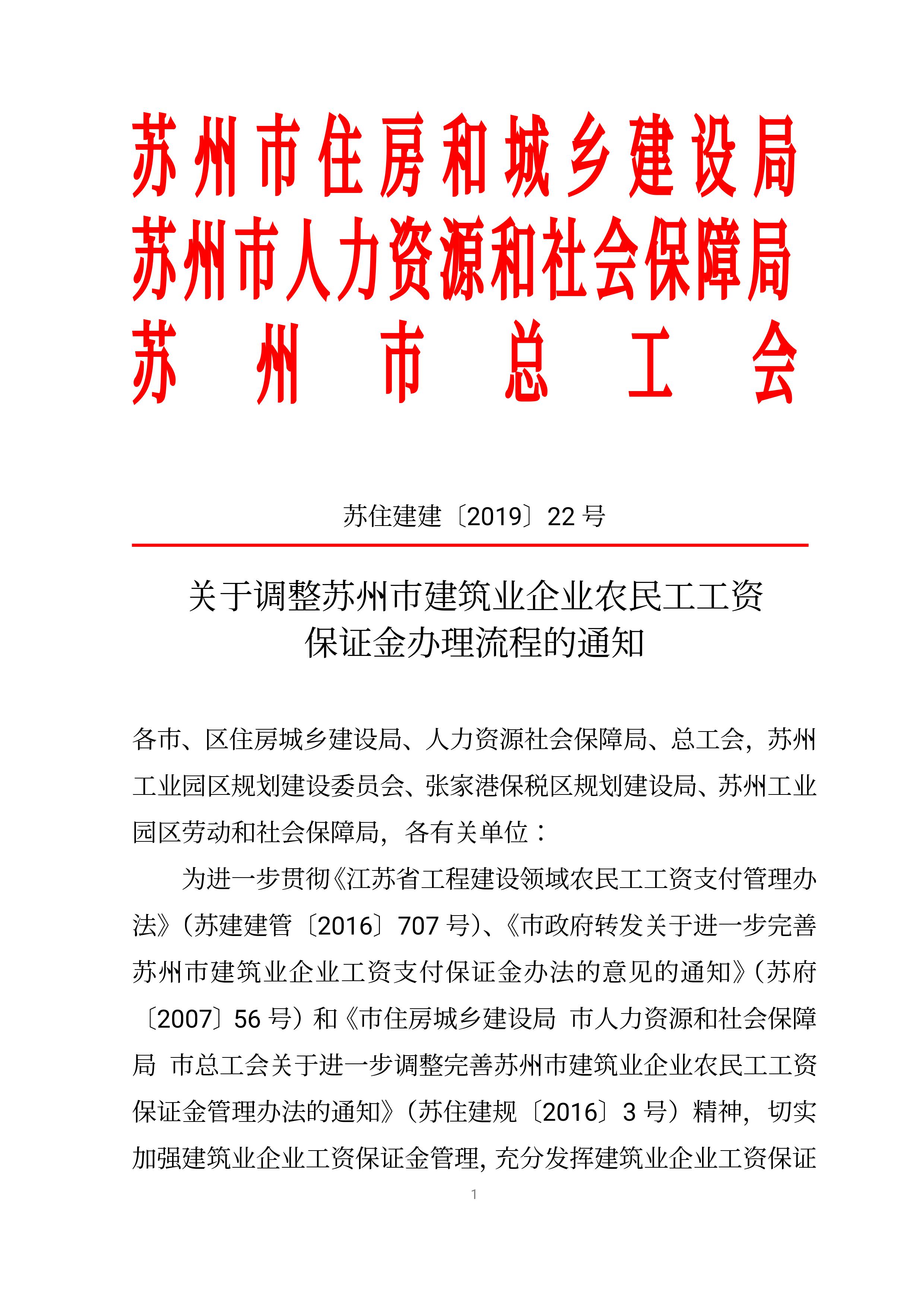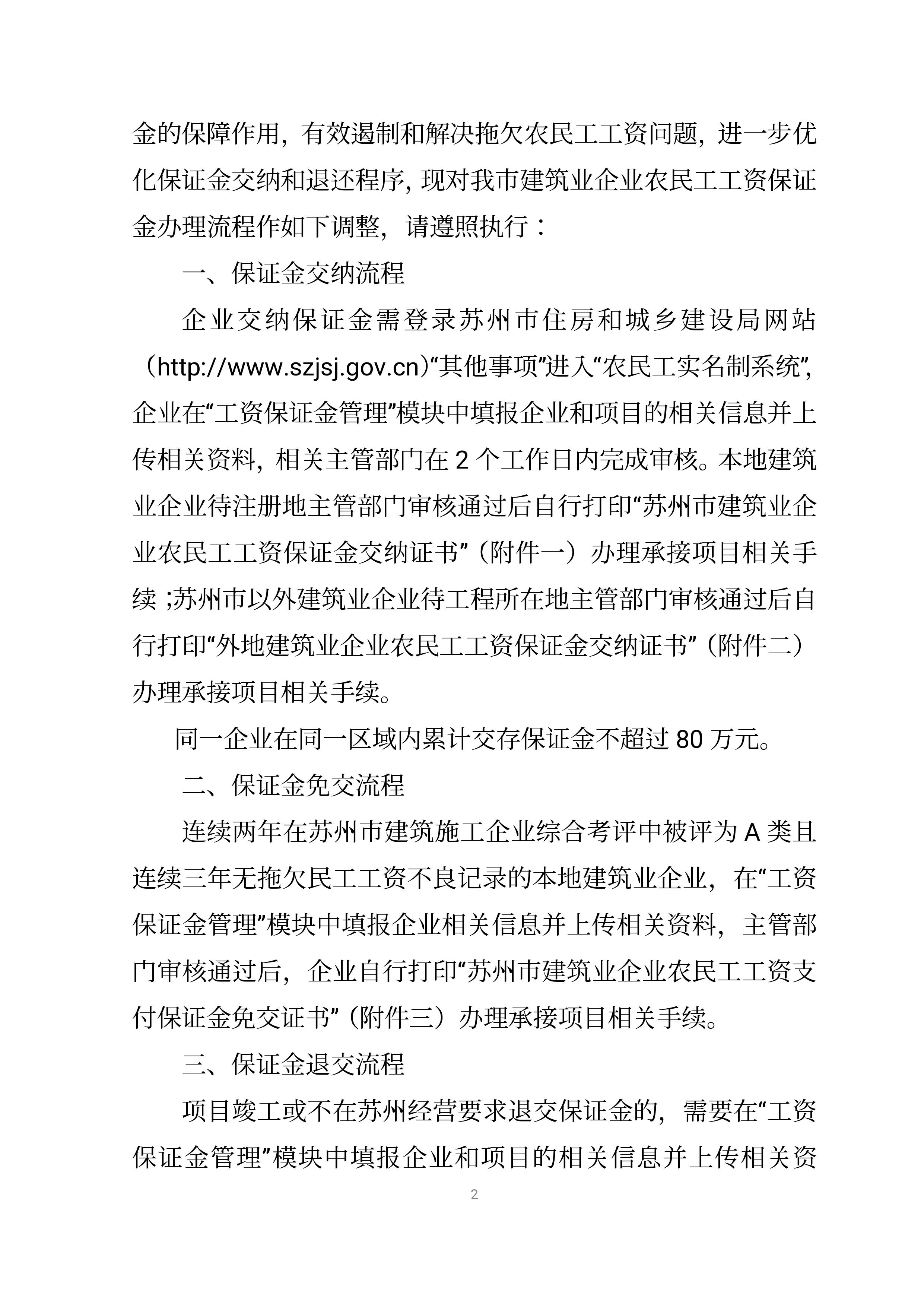 關于調整蘇州市建筑業企業農民工工資保證金辦理流程的通知