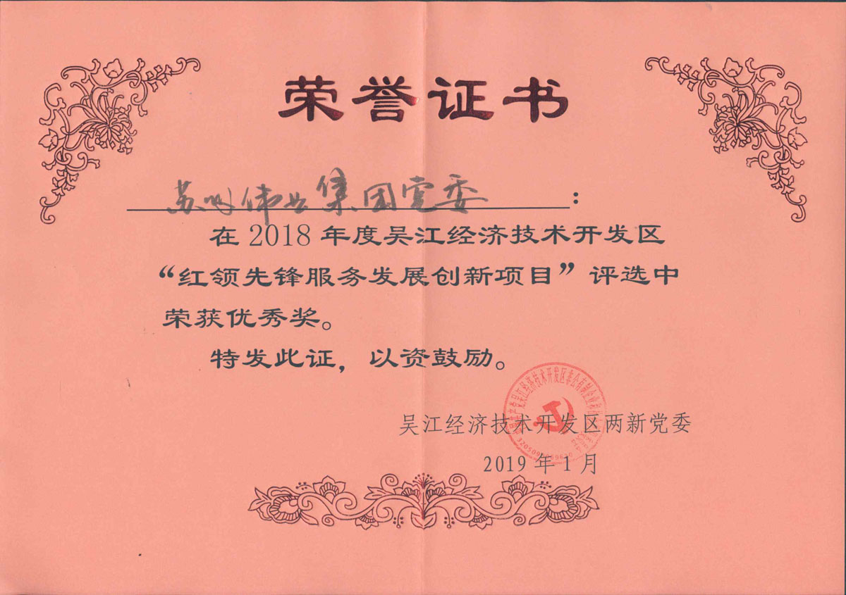 2019年1月18日,在吳江經濟開發區人社工作表彰大會上,建工支部申報的“提高鋁模現澆混凝土施工一次驗收合格率”項目獲得了區“紅領先鋒服務發展創新項目”優秀獎。沈海榮代表團隊上臺領獎。