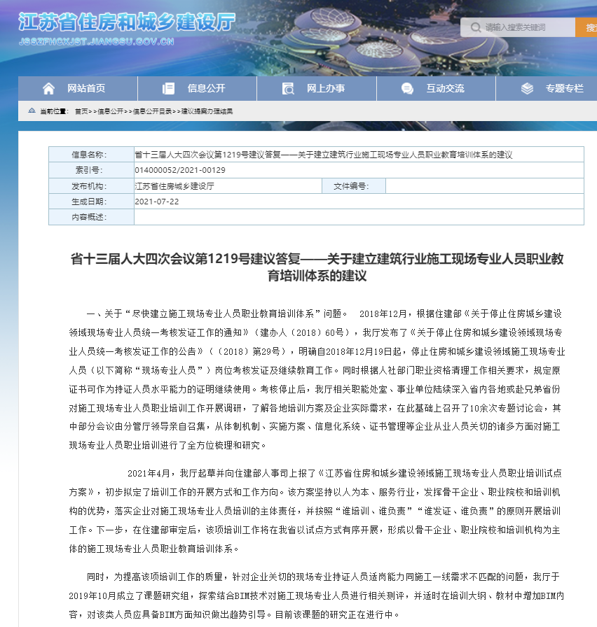 由于項目部管理人員事關重大,關于施工現場專業人員的培訓取證事宜還列上了省十三屆人大四次會議建議。